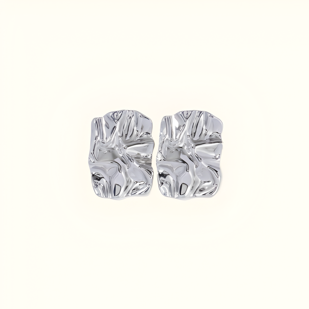 Diese Damenohrringe zeigen eine unregelmäßige, gefaltete Oberfläche mit feinen Strukturunterschieden. Die Form verleiht dem Vorderbereich Tiefe und Struktur. Ein Steckverschluss ermöglicht einfaches und sicheres Anlegen.
