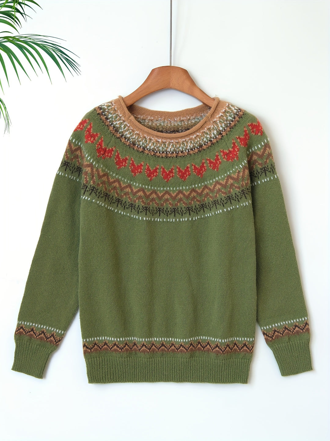 Norweger Grobstrickpullover | Langarm mit Jacquard-Muster
