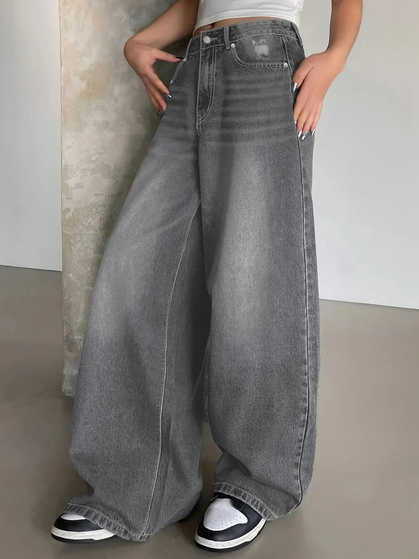 Diese Baggy Jeans Damen haben einen weiten Schnitt und einen mittelhohen Bund. Die gerade Silhouette sorgt für ein modernes Erscheinungsbild und lässt sich leicht mit verschiedenen Oberteilen kombinieren. Das Design umfasst sichtbare Nähte und einen definierten Bund.